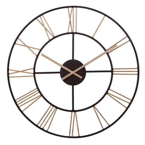 The tower xxl large open face metal wall clock 39 inch black and gold ii.